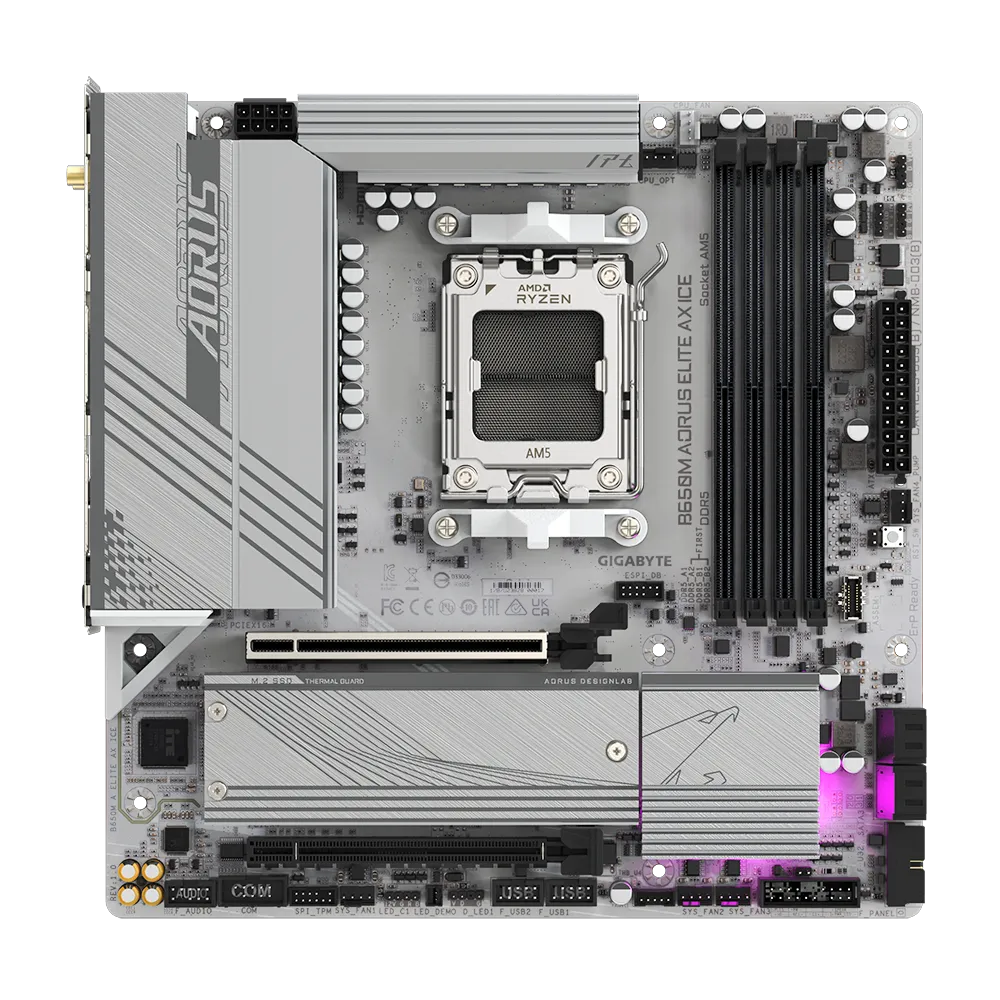 Piegāde visā Latvijā un iespēja saņemt pasūtījumu izsniegšanas punktā. Ērti norēķinu veidi. Iespēja apmaksat tieši interneta veikalā, ar karti vai skaidrā naudā preces saņemšanas punkta. Detalizēts preču apraksts un salīdzināšanas iespēja. Populārākie zīmoli no pasaules ražotājiem. 244,50 € Preces ID: 1215 Pamatplate GIGABYTE B650M A ELITE AX ICE PamataRažotājs ........................................................................................................................................................................................................ Ražotāja kods ........................................................................................................................................................................................................ B650M A ELITE AX ICE Ligzda ........................................................................................................................................................................................................ AM5 Mikroshēmu kopa (Chipset) ........................................................................................................................................................................................................ AMD B650 AtmiņaAtmiņas veids ........................................................................................................................................................................................................ DDR5 Atmiņas slotu skaits ........................................................................................................................................................................................................ 4 Diska kontrolieriSATA kontrolieris ........................................................................................................................................................................................................ 4 x SATA-III (6 Gb/s) RAID atbalsts ........................................................................................................................................................................................................ 0, 1, 10 Paplašināšanas slotiPaplašināšanas sloti ........................................................................................................................................................................................................ PCI-E 4.0 x16, PCI-E M.2 M.2. slotu veids ........................................................................................................................................................................................................ CPU: