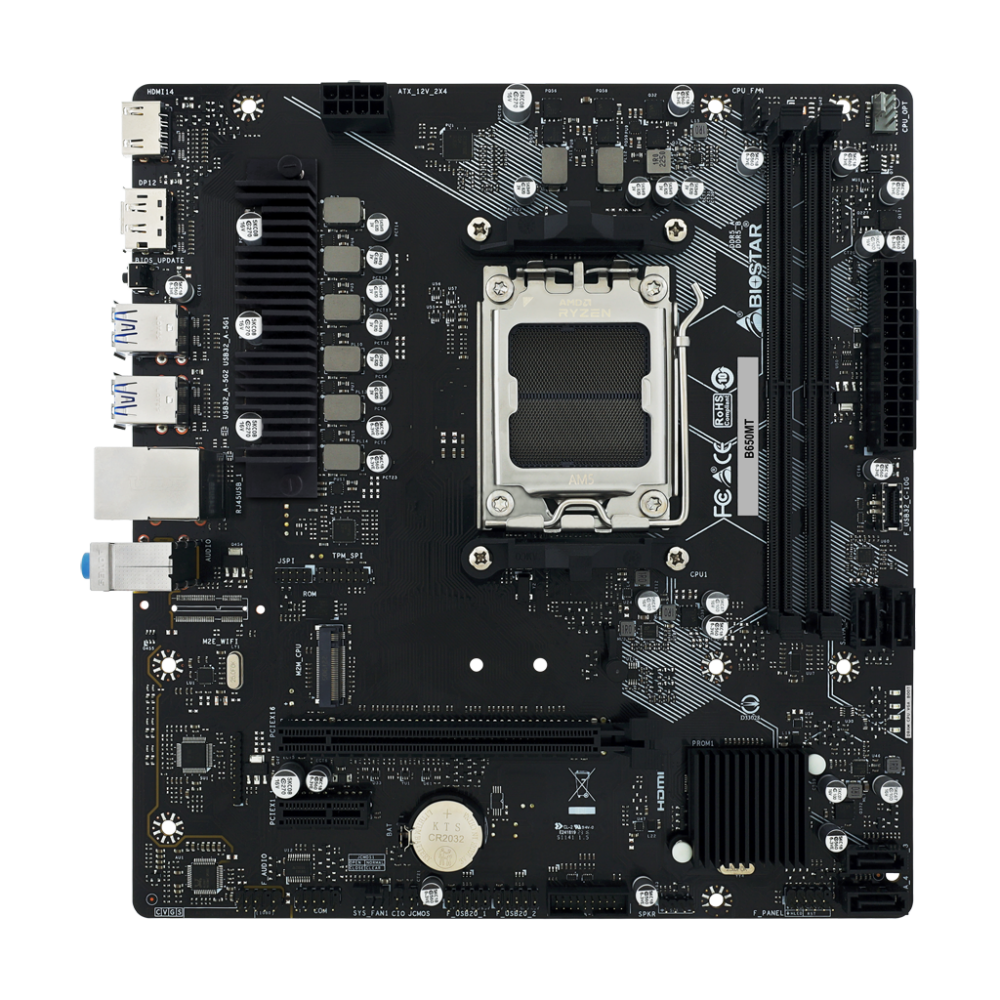 Piegāde visā Latvijā un iespēja saņemt pasūtījumu izsniegšanas punktā. Ērti norēķinu veidi. Iespēja apmaksat tieši interneta veikalā, ar karti vai skaidrā naudā preces saņemšanas punkta. Detalizēts preču apraksts un salīdzināšanas iespēja. Populārākie zīmoli no pasaules ražotājiem. 93,40 € Preces ID: 1562 Pamatplate BIOSTAR B650MT (B650MT) PamataRažotājs ........................................................................................................................................................................................................ Ražotāja kods ........................................................................................................................................................................................................ B650MT Ligzda ........................................................................................................................................................................................................ AM5 Mikroshēmu kopa (Chipset) ........................................................................................................................................................................................................ AMD B650 AtmiņaAtmiņas veids ........................................................................................................................................................................................................ DDR5 Atmiņas slotu skaits ........................................................................................................................................................................................................ 2 Diska kontrolieriSATA kontrolieris ........................................................................................................................................................................................................ SATA-III (6 Gb/s) RAID atbalsts ........................................................................................................................................................................................................ 0, 1, 10 Paplašināšanas slotiPaplašināšanas sloti ........................................................................................................................................................................................................ PCI-E M.2 Audio/VideoSkaņa ........................................................................................................................................................................................................ 8 kanāli (7.1) SaskarnesLigzdas aizmugurējā panelī ........................................................................................................................................................................................................ USB 3.2 Gen1, HDMI, DisplayPort PapilduFormfaktors ........................................................................................................................................................................................................ mATX PapildusGarantija ........................................................................................................................................................................................................ 12/24 men. Ražotāja mājās lapa ........................................................................................................................................................................................................ |