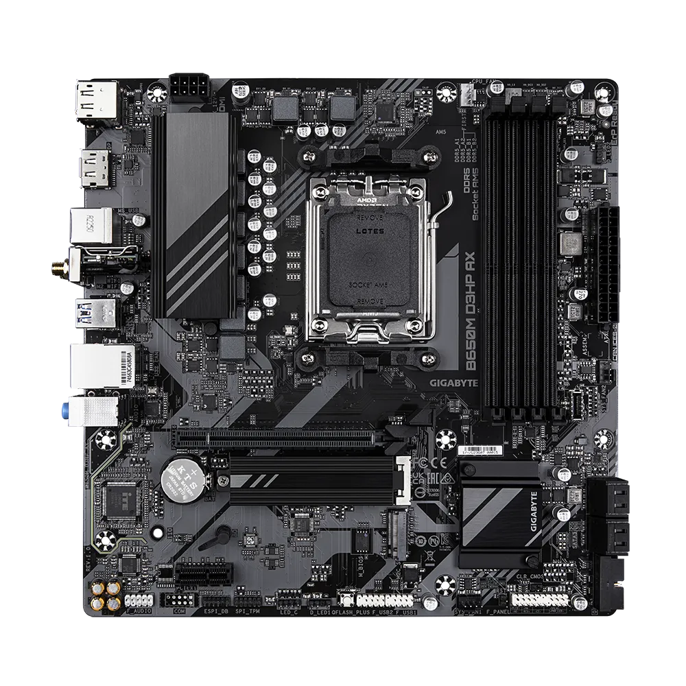 Piegāde visā Latvijā un iespēja saņemt pasūtījumu izsniegšanas punktā. Ērti norēķinu veidi. Iespēja apmaksat tieši interneta veikalā, ar karti vai skaidrā naudā preces saņemšanas punkta. Detalizēts preču apraksts un salīdzināšanas iespēja. Populārākie zīmoli no pasaules ražotājiem. 164,10 € Preces ID: 1775 Pamatplate Gigabyte B650M D3HP AX PamataRažotājs ........................................................................................................................................................................................................ Ražotāja kods ........................................................................................................................................................................................................ B650M-D3HP-AX Ligzda ........................................................................................................................................................................................................ AM5 Mikroshēmu kopa (Chipset) ........................................................................................................................................................................................................ AMD B650 AtmiņaAtmiņas veids ........................................................................................................................................................................................................ DDR5 Atmiņas slotu skaits ........................................................................................................................................................................................................ 4 Diska kontrolieriSATA kontrolieris ........................................................................................................................................................................................................ 4 x SATA-III (6 Gb/s) RAID atbalsts ........................................................................................................................................................................................................ 0, 1, 10 Paplašināšanas slotiPaplašināšanas sloti ........................................................................................................................................................................................................ PCI-E 4.0 x16, PCIe 3.0 x1, 2 x PCI-E M.2 M.2. slotu veids ........................................................................................................................................................................................................ 1 x M.2 connector (M2A_CPU), integrated in the CPU, supporting Socket 3, M key, type 2580 SSDs: