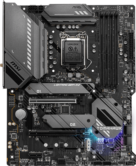 Livraison dans toute la Lettonie et possibilité de récupérer la commande dans un point de retrait. Méthodes de paiement pratiques. Possibilité de payer en ligne par carte bancaire ou en espèces au point de retrait. Description détaillée de chaque produit. Large choix des principales marques mondiales. 13.180,00 € ID du produit : 387018 Carte mère MSI MAG B560 TOMAHAWK WIFI PamataVendeur ........................................................................................................................................................................................................ Code vendeur ........................................................................................................................................................................................................ MAG B560 TOMAHAWK WIFI Prise ........................................................................................................................................................................................................ LGA 1200 Ensemble de puce (Chipset) ........................................................................................................................................................................................................ Intel B560 mémoireMode de mémoire ........................................................................................................................................................................................................ DDR4 nombre demplacements de mémoire ........................................................................................................................................................................................................ 4 Contrôleur de disqueContrôleur SATA ........................................................................................................................................................................................................ 6 x SATA-III (6 Gb/s) fentes dextensionfentes d’expansion ........................................................................................................................................................................................................ PCI-E 4.0 x16, PCI-E 3.0 x16, PCI-E x1, 3 x PCI-E M.2 Type de slot M2 ........................................................................................................................................................................................................ - Key M, 2242/2260/2280/22110 (PCIe 4.0 x4); - Key M, 2242/2260/2280 (PCIe 3.0 x4 & SATA); - Key M, 2242/2260/2280 (PCIe 3.0 x4). modes PCI-Express pris en charge ........................................................................................................................................................................................................ x16, x4 Audio/VideoVidéo intégrée ........................................................................................................................................................................................................ Oui (oui est utilisé par un processeur avec un noyau vidéo) son ........................................................................................................................................................................................................ 8 canaux (71) Contrôleur audio ........................................................................................................................................................................................................ Realtek ALC897 Réseauconnexion réseau ........................................................................................................................................................................................................ 2.5 Gigabit Ethernet (100/1000/2500 Mbps), Wi-Fi, Bluetooth Contrôleur réseau ........................................................................................................................................................................................................ Realtek RTL8125B Saskarnesnid dans le panneau arrière ........................................................................................................................................................................................................ 4 x USB 2.0, 4 x USB 3.2 Gen1, USB 3.2 Gen2x2 Type-C, HDMI, DisplayPort, RJ-45, S/PDIF (optique) Radiateur du système de refroidissement (mosfets) ........................................................................................................................................................................................................ oui SupplémentaireConnecteur de ventilateur de boîtier ........................................................................................................................................................................................................ 5 x 4-pin Connecteur dalimentation ATX 12 V ........................................................................................................................................................................................................ 4-pin, 8-pin ports USB internes sur la carte mère ........................................................................................................................................................................................................ 2 x USB 2.0, USB 3.2 Gen1, USB 3.2 Gen2 Type-C Lumière ........................................................................................................................................................................................................ oui Formats ........................................................................................................................................................................................................ ATX mode de li