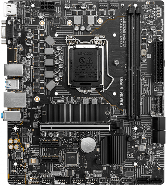 Piegāde visā Latvijā un iespēja saņemt pasūtījumu izsniegšanas punktā. Ērti norēķinu veidi. Iespēja apmaksat tieši interneta veikalā, ar karti vai skaidrā naudā preces saņemšanas punkta. Detalizēts preču apraksts un salīdzināšanas iespēja. Populārākie zīmoli no pasaules ražotājiem. Preces ID: 387021 Pamatplate MSI B560M-A PRO PamataRažotājs ........................................................................................................................................................................................................ Ražotāja kods ........................................................................................................................................................................................................ B560M-A PRO Ligzda ........................................................................................................................................................................................................ LGA 1200 Mikroshēmu kopa (Chipset) ........................................................................................................................................................................................................ Intel B560 AtmiņaAtmiņas veids ........................................................................................................................................................................................................ DDR4 Atmiņas slotu skaits ........................................................................................................................................................................................................ 2 Diska kontrolieriSATA kontrolieris ........................................................................................................................................................................................................ 6 x SATA-III (6 Gb/s) RAID atbalsts ........................................................................................................................................................................................................ nav Paplašināšanas slotiPaplašināšanas sloti ........................................................................................................................................................................................................ PCI-E 4.0 x16, 2 x PCI-E x1, PCI-E M.2 M.2. slotu veids ........................................................................................................................................................................................................ Key M, 2242/2260/2280 Audio/VideoIntegrētais video ........................................................................................................................................................................................................ jā (ja tiek izmantots procesors ar video kodolu) Skaņa ........................................................................................................................................................................................................ 8 kanāli (7.1) Audio kontrolieris ........................................................................................................................................................................................................ Realtek ALC897 TīklsTīkla saskarne ........................................................................................................................................................................................................ 2.5 Gigabit Ethernet (100/1000/2500 Mbps) Tīkla kontrolieris ........................................................................................................................................................................................................ Realtek RTL8125B SaskarnesLigzdas aizmugurējā panelī ........................................................................................................................................................................................................ PS/2, 2 x USB 2.0, 4 x USB 3.2 Gen1, VGA, HDMI, RJ-45 PapilduLigzdas korpusa ventilatoru pieslēgšanai ........................................................................................................................................................................................................ 4-pin ATX 12 V barošanas ligzda ........................................................................................................................................................................................................ 8-pin Iekšējās USB pieslēgvietas platē ........................................................................................................................................................................................................ 2 x USB 2.0, USB 3.2 Gen1 Formfaktors ........................................................................................................................................................................................................ mATX Piegādes veids ........................................................................................................................................................................................................ Retail PapildusGarantija ........................................................................................................................................................................................................ 12/24 men. Ražotāja mājās lapa ........................................................................................................................................................................................................ |