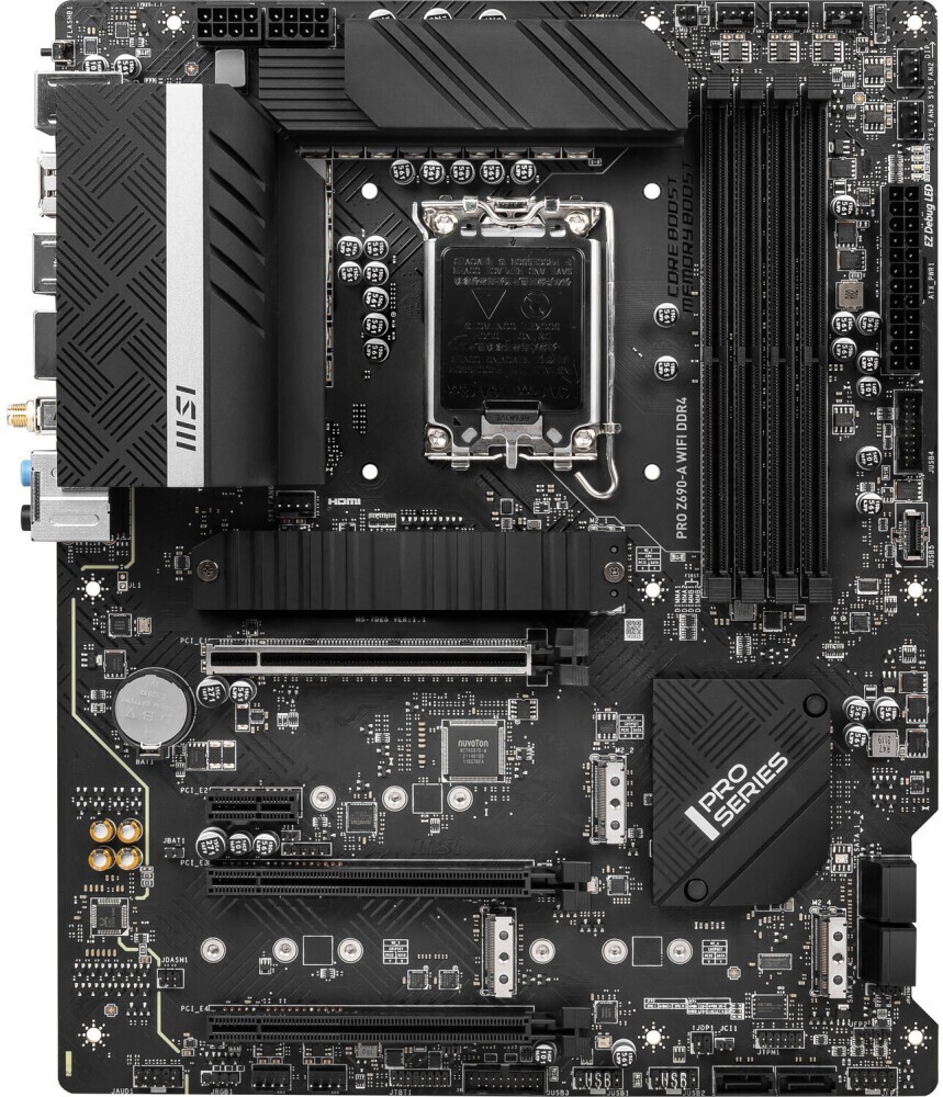 Piegāde visā Latvijā un iespēja saņemt pasūtījumu izsniegšanas punktā. Ērti norēķinu veidi. Iespēja apmaksat tieši interneta veikalā, ar karti vai skaidrā naudā preces saņemšanas punkta. Detalizēts preču apraksts un salīdzināšanas iespēja. Populārākie zīmoli no pasaules ražotājiem. 19.120,00 € Preces ID: 413466 Pamatplate MSI PRO Z690-A WIFI DDR4 PamataRažotājs ........................................................................................................................................................................................................ Ražotāja kods ........................................................................................................................................................................................................ PRO Z690-A WIFI DDR4 Ligzda ........................................................................................................................................................................................................ LGA 1700 Mikroshēmu kopa (Chipset) ........................................................................................................................................................................................................ Intel Z690 AtmiņaAtmiņas veids ........................................................................................................................................................................................................ DDR4 Atmiņas slotu skaits ........................................................................................................................................................................................................ 4 Diska kontrolieriSATA kontrolieris ........................................................................................................................................................................................................ 6 x SATA-III (6 Gb/s) RAID atbalsts ........................................................................................................................................................................................................ 0, 1, 5, 10 Paplašināšanas slotiPaplašināšanas sloti ........................................................................................................................................................................................................ PCI-E 5.0 x16, 2 x PCI-E 3.0 x16, PCI-E x1, 4 x PCI-E M.2 M.2. slotu veids ........................................................................................................................................................................................................ - Key M, 2242/2260/2280/22110 (PCIe 4.0 x4); - Key M, 2242/2260/2280 (PCIe 4.0 x4); - Key M, 2242/2260/2280 (PCIe 3.0 x4 & SATA); - Key M, 2242/2260/2280 (PCIe 4.0 x4 & SATA). Atbalstītie PCI-Express režīmi ........................................................................................................................................................................................................ PCIe 5.0 x16, PCIe 3.0 x4 & 3.0 x1 Audio/VideoIntegrētais video ........................................................................................................................................................................................................ jā (ja tiek izmantots procesors ar video kodolu) Skaņa ........................................................................................................................................................................................................ 8 kanāli (7.1) Audio kontrolieris ........................................................................................................................................................................................................ Realtek ALC897 TīklsTīkla saskarne ........................................................................................................................................................................................................ 2.5 Gigabit Ethernet (100/1000/2500 Mbps), Wi-Fi, Bluetooth Tīkla kontrolieris ........................................................................................................................................................................................................ Intel I225-V SaskarnesLigzdas aizmugurējā panelī ........................................................................................................................................................................................................ PS/2, 4 x USB 2.0, 2 x USB 3.2 Gen1, USB 3.2 Gen2, USB 3.2 Gen2x2 Type-C, HDMI, DisplayPort, RJ-45 Barošanas apakšsistēmas radiators (mosfeti) ........................................................................................................................................................................................................ jā PapilduLigzdas korpusa ventilatoru pieslēgšanai ........................................................................................................................................................................................................ 6 x 4-pin ATX 12 V barošanas ligzda ........................................................................................................................................................................................................ 2 x 8-pin Iekšējās USB pieslēgvietas platē ........................................................................................................................................................................................................ 2 x USB 2.0, 2 x USB 3.2 Gen1, USB 3.2 Gen2 Type-C ARGB 5V savienotāji uz plates ...................................................................................................................................