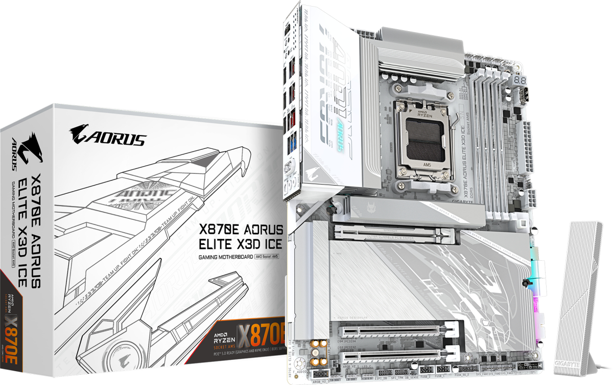 Piegāde visā Latvijā un iespēja saņemt pasūtījumu izsniegšanas punktā. Ērti norēķinu veidi. Iespēja apmaksat tieši interneta veikalā, ar karti vai skaidrā naudā preces saņemšanas punkta. Detalizēts preču apraksts un salīdzināšanas iespēja. Populārākie zīmoli no pasaules ražotājiem. 434,40 € Preces ID: 41549 Pamatplate Gigabyte X870 AORUS ELITE X3D ICE PamataRažotājs ........................................................................................................................................................................................................ Ražotāja kods ........................................................................................................................................................................................................ X870 A ELITE X ICE Ligzda ........................................................................................................................................................................................................ AM5 Mikroshēmu kopa (Chipset) ........................................................................................................................................................................................................ AMD X870E AtmiņaAtmiņas veids ........................................................................................................................................................................................................ DDR5 Atmiņas slotu skaits ........................................................................................................................................................................................................ 4 Diska kontrolieriSATA kontrolieris ........................................................................................................................................................................................................ SATA-III (6 Gb/s) RAID atbalsts ........................................................................................................................................................................................................ 0, 1, 10 Paplašināšanas slotiPaplašināšanas sloti ........................................................................................................................................................................................................ PCI-E 5.0 x16, PCIe 3.0 x 4, PCIe 4.0x4, 4 x PCI-E M.2 Audio/VideoIntegrētais video ........................................................................................................................................................................................................ jā Skaņa ........................................................................................................................................................................................................ 8 kanāli (7.1) Audio kontrolieris ........................................................................................................................................................................................................ Realtek ALC1220 TīklsTīkla saskarne ........................................................................................................................................................................................................ 2.5 Gigabit Ethernet (100/1000/2500 Mbps) SaskarnesLigzdas aizmugurējā panelī ........................................................................................................................................................................................................ 4 x USB 2.0, 2 x USB Type-C, 6 x USB 3.2, 2 x audio jacks, HDMI, RJ-45, S/PDIF (optiskais) PapilduLigzdas korpusa ventilatoru pieslēgšanai ........................................................................................................................................................................................................ 4-pin ATX 12 V barošanas ligzda ........................................................................................................................................................................................................ 8-pin Iekšējās USB pieslēgvietas platē ........................................................................................................................................................................................................ USB 2.0, USB 3.2 Gen1, USB 3.2 Gen2x2 Type-C ARGB 5V savienotāji uz plates ........................................................................................................................................................................................................ 3-pin RGB 12V savienotāji uz plates ........................................................................................................................................................................................................ 4-pin Apgaismojums ........................................................................................................................................................................................................ jā Formfaktors ........................................................................................................................................................................................................ ATX Noformējumā izmantotās krāsas ........................................................................................................................................................................................................ balts PapildusSvars ........................................................................................................................................................................................................ 2.2 kg Garantija ..........................