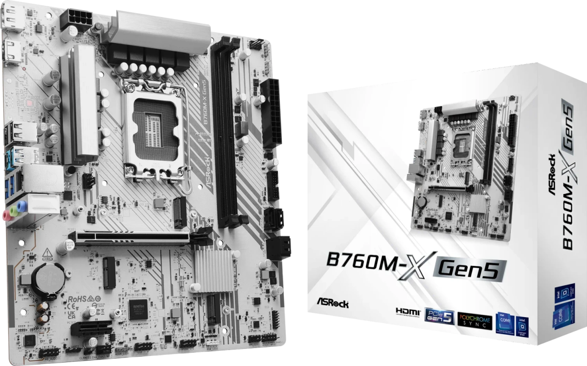 Piegāde visā Latvijā un iespēja saņemt pasūtījumu izsniegšanas punktā. Ērti norēķinu veidi. Iespēja apmaksat tieši interneta veikalā, ar karti vai skaidrā naudā preces saņemšanas punkta. Detalizēts preču apraksts un salīdzināšanas iespēja. Populārākie zīmoli no pasaules ražotājiem. 126,60 € Preces ID: 41934 Pamatplate ASRock B760 B760M-X GEN5 Silver (90-MXBTR0-A0UAYZ) PamataRažotājs ........................................................................................................................................................................................................ Ražotāja kods ........................................................................................................................................................................................................ 90-MXBTR0-A0UAYZ Ligzda ........................................................................................................................................................................................................ LGA 1700 Mikroshēmu kopa (Chipset) ........................................................................................................................................................................................................ Intel B760 AtmiņaAtmiņas veids ........................................................................................................................................................................................................ DDR5 Atmiņas slotu skaits ........................................................................................................................................................................................................ 2 Diska kontrolieriSATA kontrolieris ........................................................................................................................................................................................................ SATA-III (6 Gb/s) RAID atbalsts ........................................................................................................................................................................................................ 0, 1, 5, 10 Paplašināšanas slotiPaplašināšanas sloti ........................................................................................................................................................................................................ PCI-E 5.0 x16, PCIe 3.0 x1, PCI-E M.2 Audio/VideoAudio kontrolieris ........................................................................................................................................................................................................ Realtek ALC897 TīklsTīkla saskarne ........................................................................................................................................................................................................ 2.5 Gigabit Ethernet (100/1000/2500 Mbps) Tīkla kontrolieris ........................................................................................................................................................................................................ Realtek RTL8125BG SaskarnesLigzdas aizmugurējā panelī ........................................................................................................................................................................................................ 2 x USB 2.0, USB Type-C, 3 x USB 3.0, LAN, 3 x audio jacks, HDMI, DisplayPort, RJ-45 Barošanas apakšsistēmas radiators (mosfeti) ........................................................................................................................................................................................................ jā PapilduLigzdas korpusa ventilatoru pieslēgšanai ........................................................................................................................................................................................................ 4-pin ATX 12 V barošanas ligzda ........................................................................................................................................................................................................ 8-pin Iekšējās USB pieslēgvietas platē ........................................................................................................................................................................................................ USB 2.0, USB 3.2 Gen1 ARGB 5V savienotāji uz plates ........................................................................................................................................................................................................ 3-pin RGB 12V savienotāji uz plates ........................................................................................................................................................................................................ 4-pin Formfaktors ........................................................................................................................................................................................................ mATX Piegādes veids ........................................................................................................................................................................................................ Retail Noformējumā izmantotās krāsas ........................................................................................................................................................................................................ balts, sudraba PapildusGarantija ........................................................................................................................................................................................................ 12/