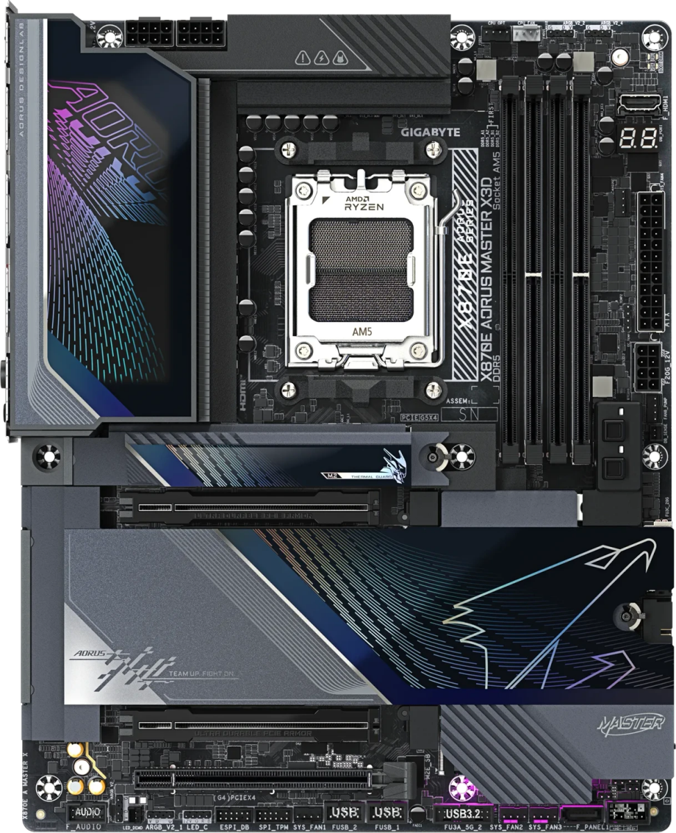 Piegāde visā Latvijā un iespēja saņemt pasūtījumu izsniegšanas punktā. Ērti norēķinu veidi. Iespēja apmaksat tieši interneta veikalā, ar karti vai skaidrā naudā preces saņemšanas punkta. Detalizēts preču apraksts un salīdzināšanas iespēja. Populārākie zīmoli no pasaules ražotājiem. 749,50 € Preces ID: 45946 Pamatplate GIGABYTE X870E AORUS Master X3D Black (X870E A MASTER X) PamataRažotājs ........................................................................................................................................................................................................ Ražotāja kods ........................................................................................................................................................................................................ X870E A MASTER X Ligzda ........................................................................................................................................................................................................ AM5 Mikroshēmu kopa (Chipset) ........................................................................................................................................................................................................ AMD X870E AtmiņaAtmiņas veids ........................................................................................................................................................................................................ DDR5 Atmiņas slotu skaits ........................................................................................................................................................................................................ 4 Diska kontrolieriSATA kontrolieris ........................................................................................................................................................................................................ 2 x SATA-III (6 Gb/s) RAID atbalsts ........................................................................................................................................................................................................ 0, 1, 5, 10 Paplašināšanas slotiPaplašināšanas sloti ........................................................................................................................................................................................................ PCI-E 5.0 x16, PCI-E 4.0 x16, PCI-E 5.0 x8, 5 x PCI-E M.2 M.2. slotu veids ........................................................................................................................................................................................................ Type 2580/2280 (for the primary M2A_CPU slot)