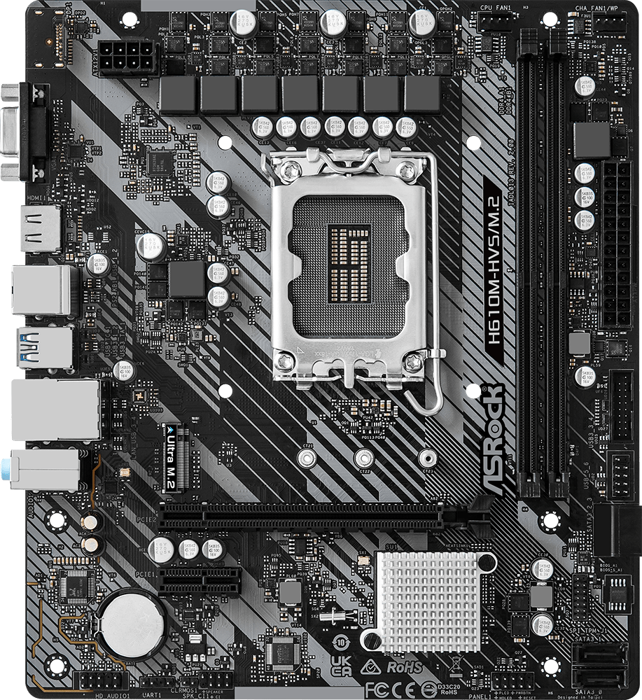 Livraison dans toute la Lettonie et possibilité de récupérer la commande dans un point de retrait. Méthodes de paiement pratiques. Possibilité de payer en ligne par carte bancaire ou en espèces au point de retrait. Description détaillée de chaque produit. Large choix des principales marques mondiales. 7.200,00 € ID du produit : 462697 Carte mère ASRock H610M-HVS/M.2 R2.0 PamataVendeur ........................................................................................................................................................................................................ Code vendeur ........................................................................................................................................................................................................ H610M-HVS/M.2 R2.0 Prise ........................................................................................................................................................................................................ LGA 1700 Ensemble de puce (Chipset) ........................................................................................................................................................................................................ Intel H610 mémoireMode de mémoire ........................................................................................................................................................................................................ DDR4 nombre demplacements de mémoire ........................................................................................................................................................................................................ 2 Contrôleur de disqueContrôleur SATA ........................................................................................................................................................................................................ 4 x SATA-III (6 Gb/s) fentes dextensionfentes d’expansion ........................................................................................................................................................................................................ PCI-E 4.0 x16, PCI-E x1, PCI-E M.2 Type de slot M2 ........................................................................................................................................................................................................ Key M, 2242/2260/2280 (PCIe Gen3x4) Audio/VideoVidéo intégrée ........................................................................................................................................................................................................ Oui (oui est utilisé par un processeur avec un noyau vidéo) son ........................................................................................................................................................................................................ 8 canaux (71) Contrôleur audio ........................................................................................................................................................................................................ Realtek ALC897/887 Réseauconnexion réseau ........................................................................................................................................................................................................ Gigabit Ethernet (10/100/1000 Mbps) Contrôleur réseau ........................................................................................................................................................................................................ Realtek RTL8111H Saskarnesnid dans le panneau arrière ........................................................................................................................................................................................................ PS/2, 4 x USB 2.0, 2 x USB 3.2 Gen1, VGA, HDMI, RJ-45 SupplémentaireConnecteur de ventilateur de boîtier ........................................................................................................................................................................................................ 4-pin Connecteur dalimentation ATX 12 V ........................................................................................................................................................................................................ 8-pin ports USB internes sur la carte mère ........................................................................................................................................................................................................ USB 2.0, USB 3.2 Gen1 Formats ........................................................................................................................................................................................................ mATX mode de livraison ........................................................................................................................................................................................................ Retail couleurs utilisées dans le formulaire ........................................................................................................................................................................................................ Gris, noir Fonction spécialeGarantie ........................................................................................................................................................................................................ 12/24 mois Site web du fabricant ........................................................................................................................................................................................................ 