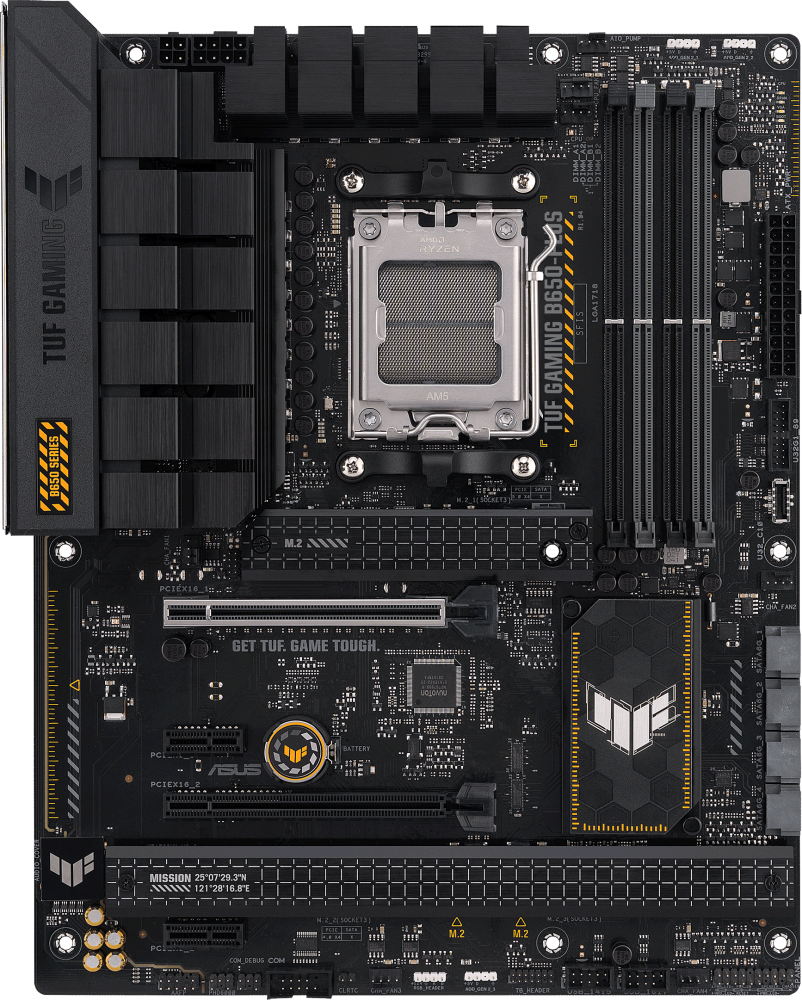Piegāde visā Latvijā un iespēja saņemt pasūtījumu izsniegšanas punktā. Ērti norēķinu veidi. Iespēja apmaksat tieši interneta veikalā, ar karti vai skaidrā naudā preces saņemšanas punkta. Detalizēts preču apraksts un salīdzināšanas iespēja. Populārākie zīmoli no pasaules ražotājiem. 215,60 € Preces ID: 462703 Pamatplate ASUS TUF GAMING B650-PLUS (TUF GAMING B650-PLUS) PamataRažotājs ........................................................................................................................................................................................................ Ražotāja kods ........................................................................................................................................................................................................ TUF GAMING B650-PLUS Ligzda ........................................................................................................................................................................................................ AM5 Mikroshēmu kopa (Chipset) ........................................................................................................................................................................................................ AMD B650 AtmiņaAtmiņas veids ........................................................................................................................................................................................................ DDR5 Atmiņas slotu skaits ........................................................................................................................................................................................................ 4 Diska kontrolieriSATA kontrolieris ........................................................................................................................................................................................................ 4 x SATA-III (6 Gb/s) RAID atbalsts ........................................................................................................................................................................................................ 0, 1, 10 Paplašināšanas slotiPaplašināšanas sloti ........................................................................................................................................................................................................ 2 x PCI-E 4.0 x16, 2 x PCI-E x1, 3 x PCI-E M.2 M.2. slotu veids ........................................................................................................................................................................................................ - Key M, 2242/2260/2280 (PCIe 5.0 x4); - Key M, 2242/2260/2280/22110 (PCIe 4.0 x4); - Key M, 2242/2260/2280 (PCIe 4.0 x4). Atbalstītie PCI-Express režīmi ........................................................................................................................................................................................................ x16/x4 Audio/VideoIntegrētais video ........................................................................................................................................................................................................ jā (ja tiek izmantots procesors ar video kodolu) Skaņa ........................................................................................................................................................................................................ 8 kanāli (7.1) Audio kontrolieris ........................................................................................................................................................................................................ Realtek TīklsTīkla saskarne ........................................................................................................................................................................................................ 2.5 Gigabit Ethernet (100/1000/2500 Mbps) Tīkla kontrolieris ........................................................................................................................................................................................................ Realtek SaskarnesLigzdas aizmugurējā panelī ........................................................................................................................................................................................................ 4 x USB 2.0, 2 x USB 3.2 Gen2, USB 3.2 Gen2 Type-C, USB 3.2 Gen2x2 Type-C, HDMI, DisplayPort, RJ-45 Barošanas apakšsistēmas radiators (mosfeti) ........................................................................................................................................................................................................ jā PapilduLigzdas korpusa ventilatoru pieslēgšanai ........................................................................................................................................................................................................ 4 x 4-pin ATX 12 V barošanas ligzda ........................................................................................................................................................................................................ 4-pin, 8-pin Iekšējās USB pieslēgvietas platē ........................................................................................................................................................................................................ 2 x USB 2.0, USB 3.2 Gen1, USB 3.2 Gen1 Type-C ARGB 5V savienotāji uz plates ........................................................................................................................................................................................................ 3 x 3-pin RGB 12V savienotāji uz plates 